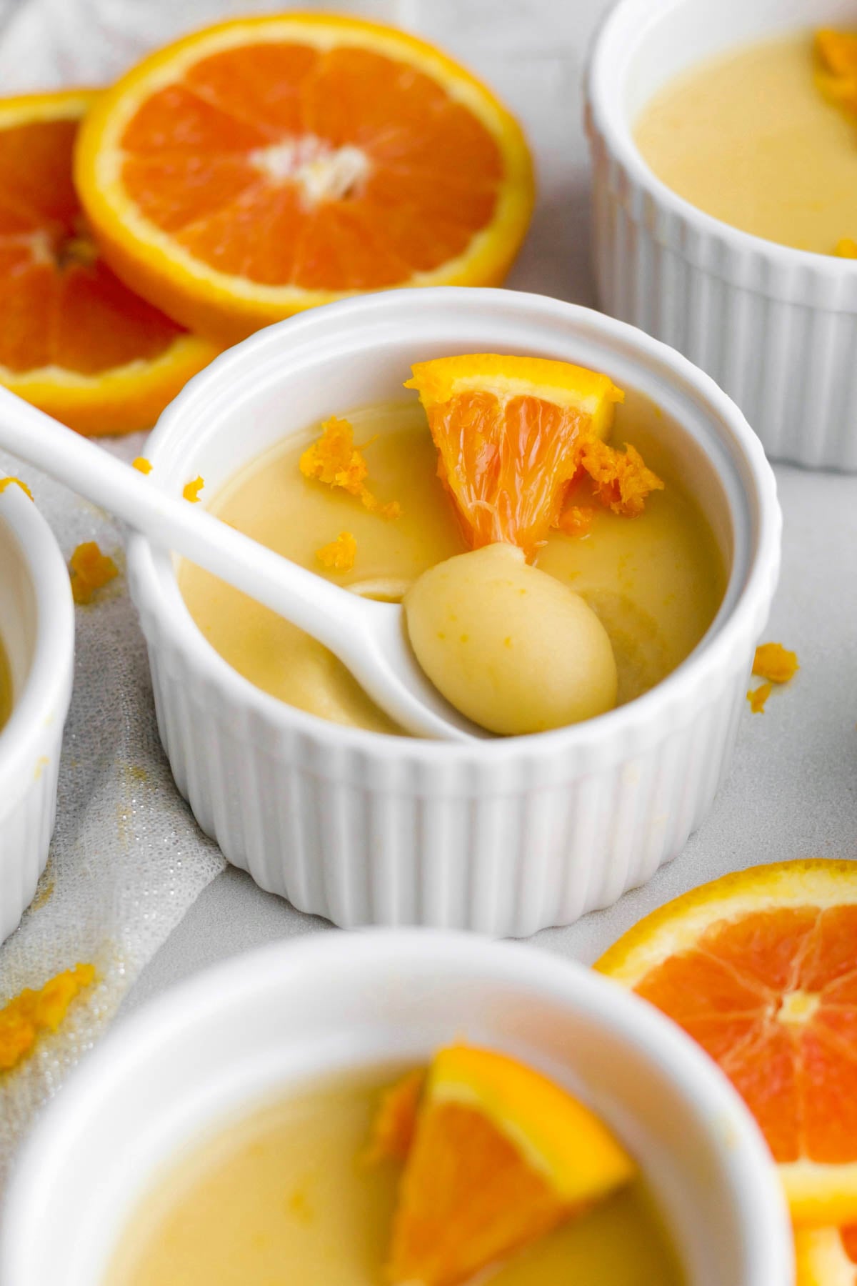 Storing: Once the orange posset sets (after about 2 hours chilling in the fridge) carefully place plastic wrap on the top of the ramekins so it is not touching the posset itself. Store in the fridge for up to 2 days.
